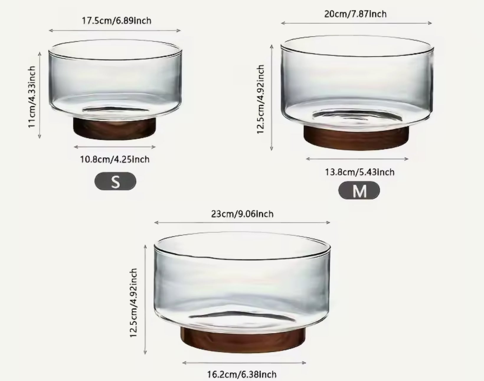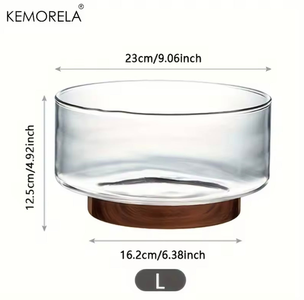 This large glass fruit bowl features a sturdy wooden base, combining elegance with durability for versatile use. Ideal for serving salads, snacks, popcorn, or nuts, it offers a stylish and practical storage solution for your home. Its generous size accommodates abundant servings, making it perfect for everyday use or festive occasions like Christmas. The clear glass design allows your food to be displayed attractively, while the wooden base provides stability and a natural touch to any table setting.